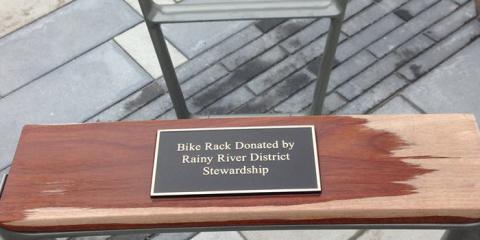 Rainy River District Stewardship donated $1,000 toward new bike racks in the Rainy Lake Square.